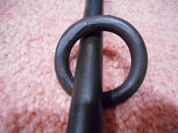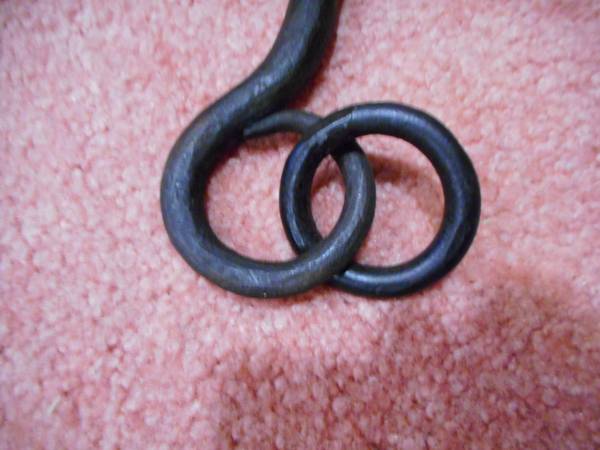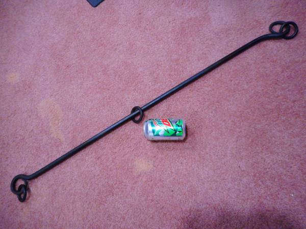 Heavy, sturdy, custom-made cast iron spreader bar. Can be used by adults. It's 41 inches long, and has 3 iron rings: 1 ring rides along the length of the bar, and the other 2 are "captive" in loops at the end of the bar. Made by an experienced blacksmith in Maryland. Bar can be suspended, or not.