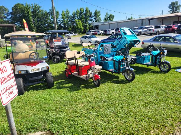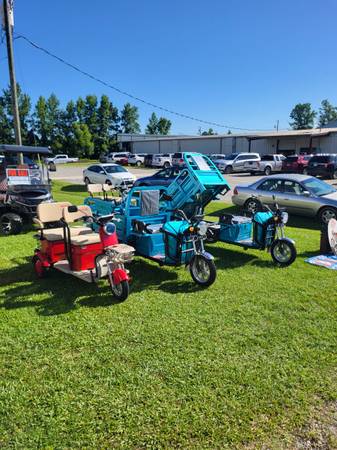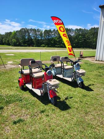 WOW! Selling today NEW Golf Carts w/Charger! Colors are rich iridescent showing luminous colors that seem to change when seen from different angles. Carts have Too many features to list...But I will try! You have a fast 2 seater Cart with lights, turn signals and basket! Storage compartments are under the seats. Charger and Keys are included! These Carts are Excellent for Neighborhood Jaunts or a Family friendly "toy" for Grand Kids as a Yard Scooter! Maybe fun mobility down at the Inner Harbor with a quiet electric Cart! These electric neighborhood golf carts offer top notch quality and unparalleled versatility. DELIVERY AVAILBLE! We are located at Tar River Flea Mkt. address is 1820 S. Wesleyan Blvd in Rocky Mount! Open 9-4 Fri, Sat and Sunday! Reasonable Offers are Welcomed! Thank You for Viewing Ad!