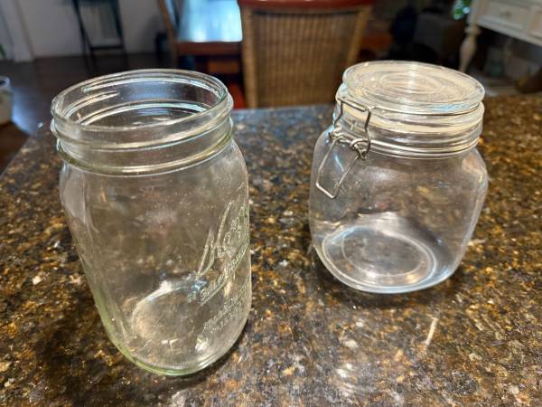 PRICE FOR BOTH, selling as set only; Jar with lid about 4in x 4in x6hi, 3.5in x 3.5in x 7in height; Cross posted, would deliver for a fee, no holds/FCFS; If you still see it, it's still for sale.