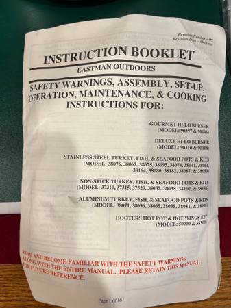Selling our “never been used” Eastman Outdoors Cooking Kit (minus the propane burner). Many folks use this item for deep frying turkeys. The first three pictures are of the item for sale. The final...