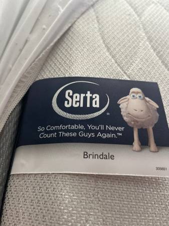 Rollaway twin bed with Serta mattress. The mattress was barely used and always had a mattress cover on it. The frame can be lowered so it can fit under other beds or stored away when not being used.