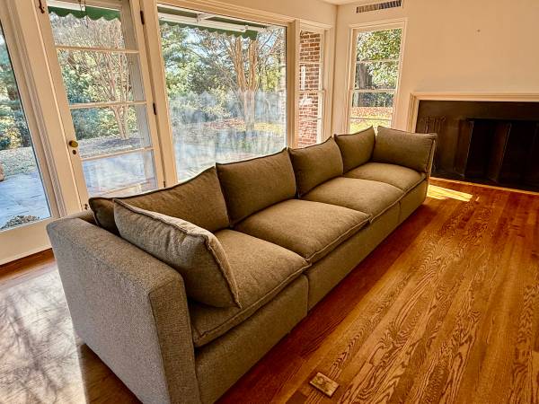 We purchased this as a customer return- returned only because it was the wrong size ordered. Unfortunately, after getting it home, we realized the configuration won’t work with our current living room plans and existing furniture for our new space.
