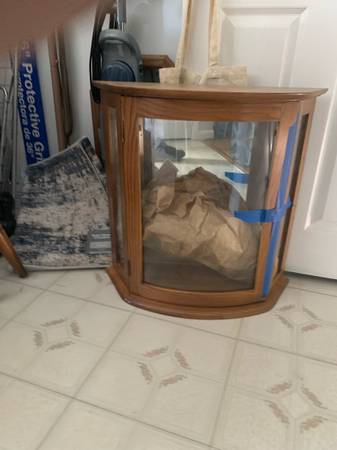 Nice bow front cabinet . Two glass shelves with hardware. Just needed something bigger.