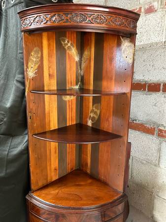 My friend gave me his mother’s 1940s curio corner cabinet.