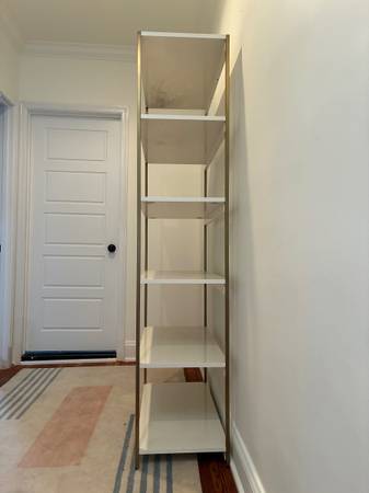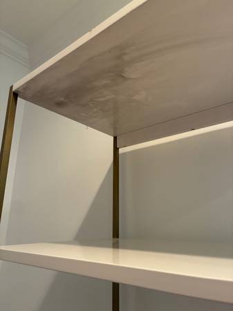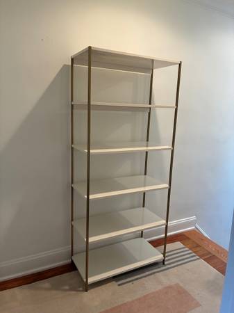 West Elm bookshelf, bought 2019. Some smoke damage from a candle on underside of top level. 31" wide x 15.5" deep x 71.5" tall – $150 obo