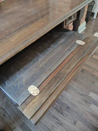 Solid pine writing desk with a pull out drawer for the computer keyboard. Good condition with some scuff marks on the table top. Thanks for looking!