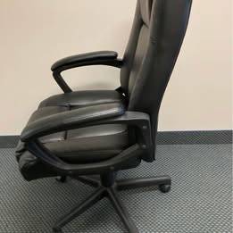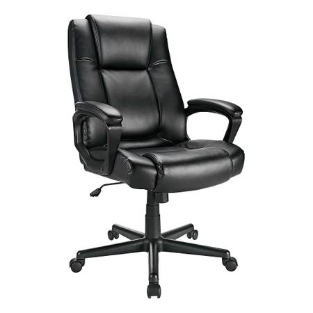 Give your desk an inviting look with this Realspace Hurston executive chair. The sturdy wooden frame provides strength and stability, while the bonded leather material pairs style and easy maintenance. A tilt and lock mechanism and swivel function support reclining and versatile seating angles. This Realspace Hurston executive chair has padded arms to add comfort.