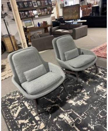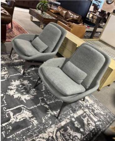 2 Blue Dot Gray Field Lounge Chairs EACH $950 W-38 D-38 H-36 Excellent Condition