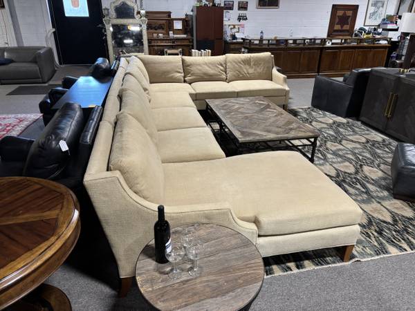 Custom Sand Upholstered Sectional Sofa with Chaise W-170.5/108 D-39(chaise-66) H-34.5 Excellent Condition