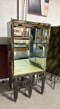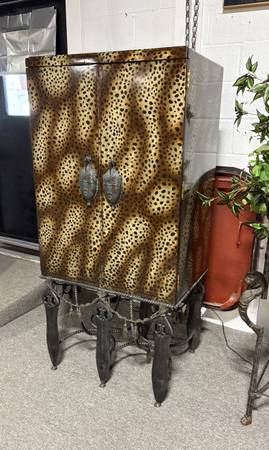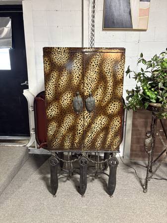 Maitland Smith Leopard Print Mirrored Bar Cabinet 31.5 x 23” x 64.5” Excellent Condition