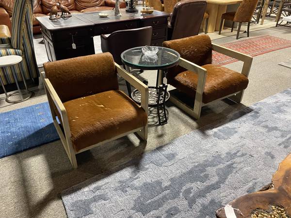 Pair of Contemporary Hide Chairs 27x30x26 Excellent Condition