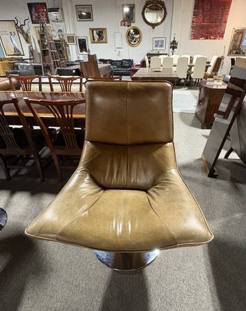 Pair of Restoration Hardware Leather Hopper Bucket Swivel Chairs 40"W x 35"D x 46"H Excellent Condition