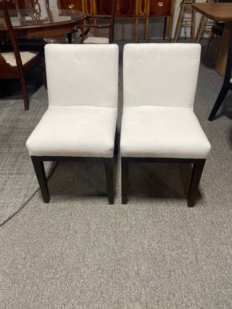 Pair of Restoration Hardware Upholstered MORGAN TRACK ARM DINING CHAIRS 18”x 24” x 32” Excellent Condition