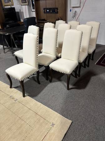 Set of 10 Pottery Barn Calais White Upholstered Dining Chairs Excellent Condition