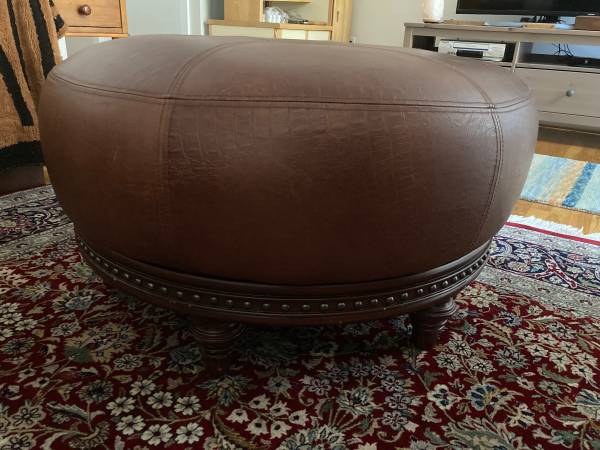 Real leather hassock in perfect condition. 19 inches high and 33 inches in diameter.