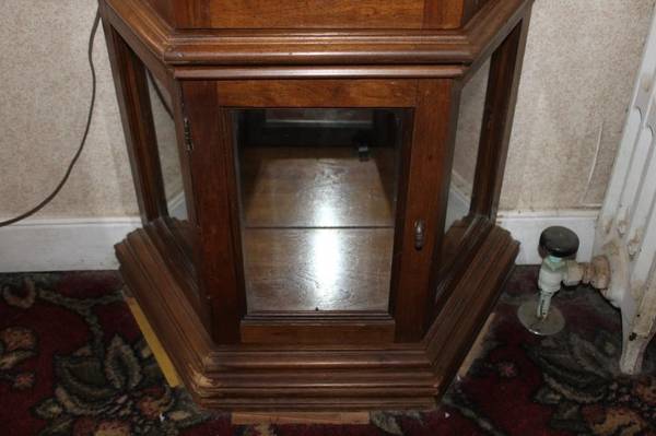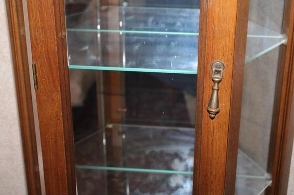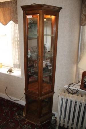 Modern Lighted &Mirror Curio Cabinet with glass shelfs. It is 24"x10.5"x70.5" Easily display your heirlooms dust free $65 BO, Cash