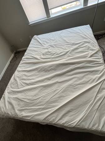 This Queen Size Mattress is in great condition – always kept covered, from a non-smoking, no-pet home. The fabric is clean and fresh, with no stains, odors, or bugs. The set includes a remote-controlled adjustable bed frame, perfect for reading, relaxing, or getting that perfect night’s sleep. The frame can easily be taken apart for transport and fits in most vehicles. Buyer must pick up - my building has both an elevator and a ramp for smooth loading.