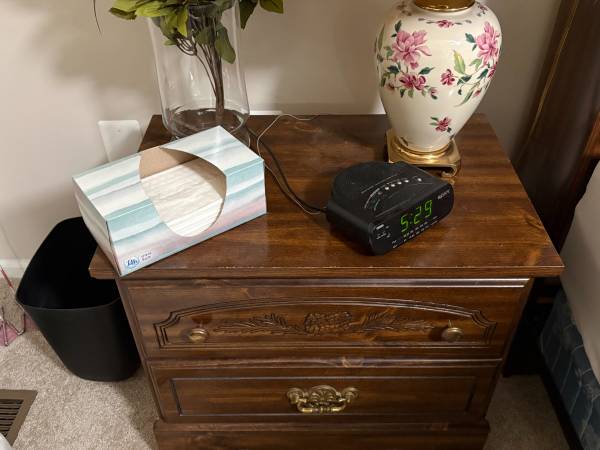 nightstand: 21.5 inches tall, 16.5 inches deep and 24.5 inches wide.