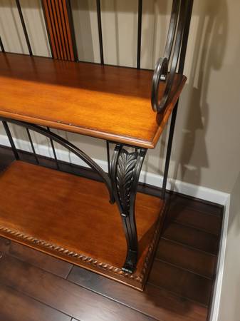 Wood and wrought iron bakers rack Light cherry finish Excellent condition 44W x 21D x 80H