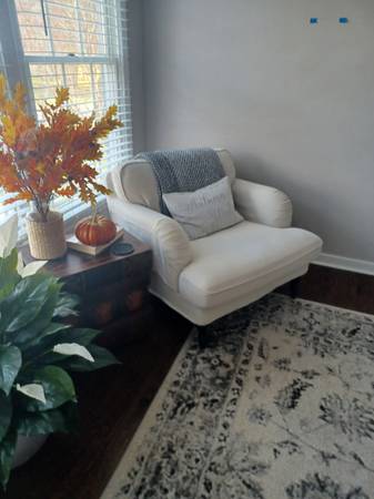 Almost Brand Néw IKEA accent chair. We bought it last year. We are selling because scaling down to a smaller house. This is in office and hardly nobody has sat in it. Very elegant and we are Clean and organized people. The cover is washable. Looks amazing. We paid $700, buy for $350 cash Cash only. No Cash app or personal check. No thanks. Serious buyers only please. Call show contact info