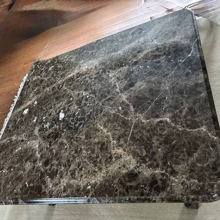 The marble top sits gracefully on elegant cabriole legs, each with intricately carved acanthus knees and scroll feet. The design seamlessly combines classic style with artisanal craftsmanship, offering both beauty and functionality. The dimensions are 53ʺW × 61ʺL × 23".
