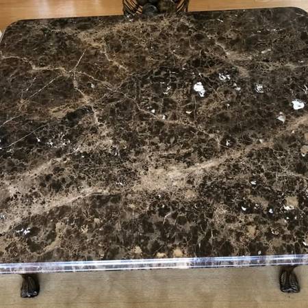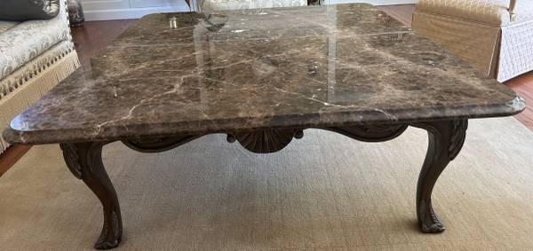 Henredon Carved Wood Cocktail Table with Marble Top