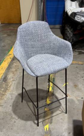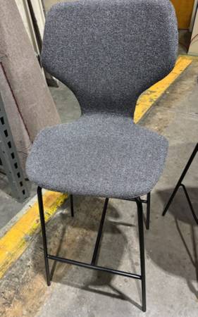 New stools perfect condition Cloth top with metal legs 3 barrel type light gray with lots of accent color in the fabric $70/each 1 butterfly style in charcole gray $70 These are 30" tall seat bar...
