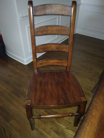 Large Solid Dining room table and 4 chairs (seats 8) Great for Country farm house kitchen,cabin,rec room extra company Walnut finish hard wood dove tail construction CASH ONLY will deliver for a fee...