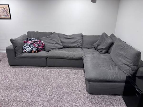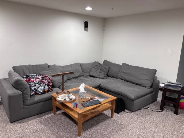 Super soft and comfortable gray sectional sofa in good condition. Purchased three years ago (can provide receipt). Getting rid of it only because we need a pull out sofa down in our basement instead. Covers are washable. Need this gone no later than Monday evening.