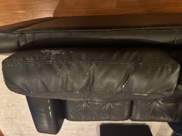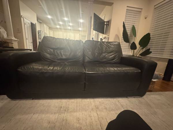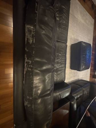 Two leather sofas ( leather where body touches, the rest is faux leather). Size: 60” and 79” wide. Faux leather has excessive pealing and will need some TLC. Two sofas sold together. Buyer will need...