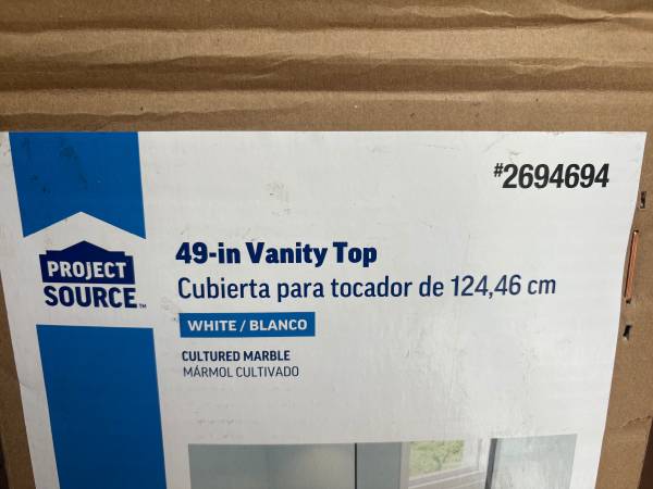 Vanity top, molded sink, never used, still in box, cultured marble, white, 49” Asking $75, OBO