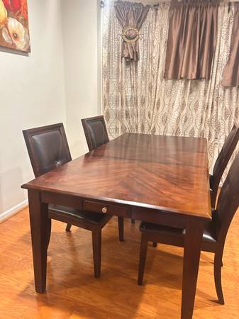 Price is negotiable; comes with four chairs and drawers. No shipping