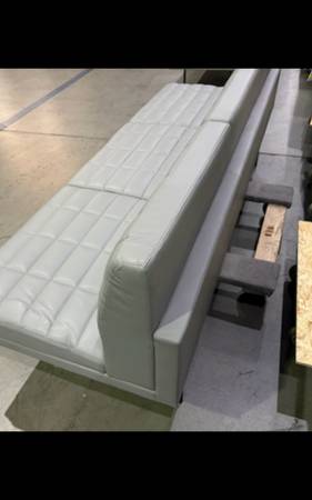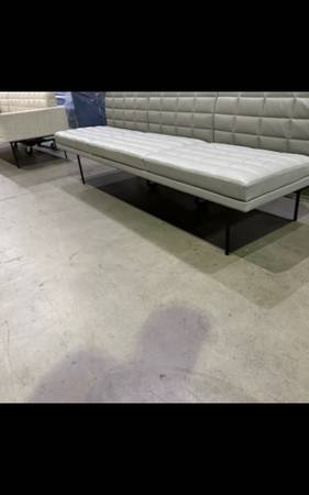 Super deal GEIGER INTERNATIONAL new Model::: Tuxedo Pleated in gray Made in the USA North Carolina 83" long 28 deep 32tall High end top grain leather LEATHER sofa Sells for $8200 top quality...