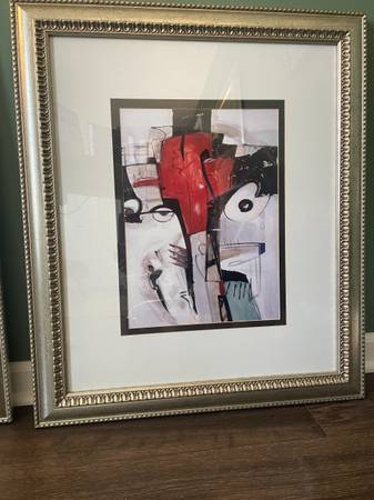 Large contemporary wall art set 2 pieces of art Beautiful ornate gold frames 24 L x 28 H