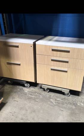 New Blond wood cabinets White top 30" wide 30" tall 24 deep Have cubbies to go on top extra 2 drawer both files 3 drawer bottom one a file cabinet Selling At $80 each new New perfect