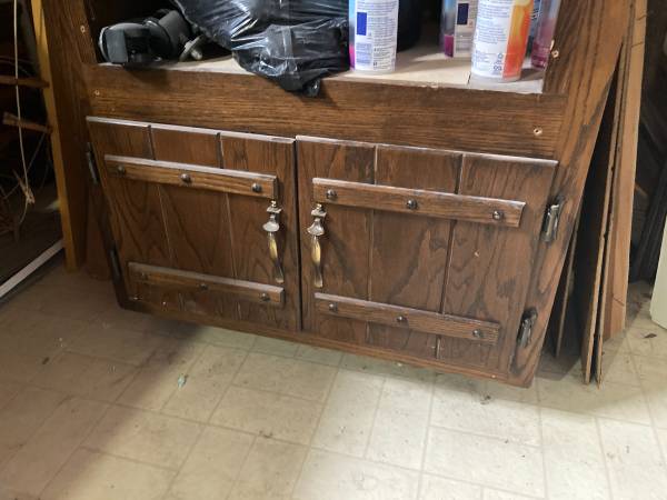 We switched over to a stand-alone stove/oven range, so we uninstalled the wall oven. This is very high quality and heavy solid hardwood with nice upper and lower cabinet doors with high grade hinge hardware. This cabinetry was so nice, that I had to save it to pass it on to somebody else. The dimensions are 84"tall x 27"wide x 24"deep and the oven space is 22"wide by 39"tall. The cabinet is now stored in our dry climate conditioned basement.