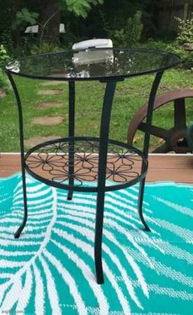 Glass Patio Table,The side table is designed with round glass top, the clear texture and black frame will blend in with your yard and garden. Excellent quality and look