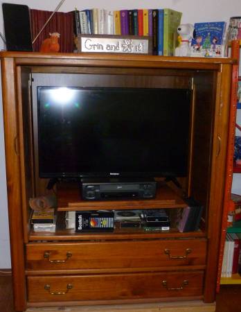 Solid oak entertainment console/unit. Approx. size 40"x23"x50"