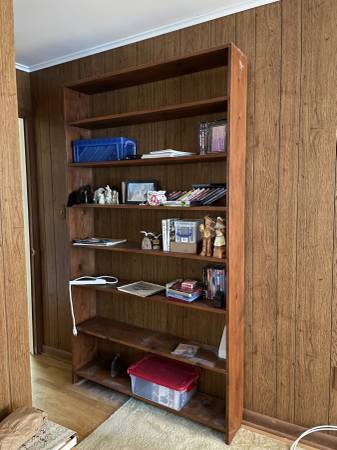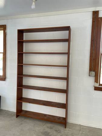 Prefect for books, toys, photos, or decorations etc. Very nice book shelf. Made from solid wood, pine. Looking for a good home. It is about 7'6" tall, 49" wide, and 11" deep. Thanks