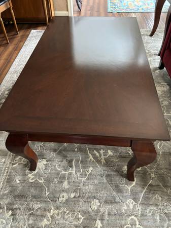 Solid, dark cherry coffee table in excellent condition. 52" length x 30" width. Height is 20"