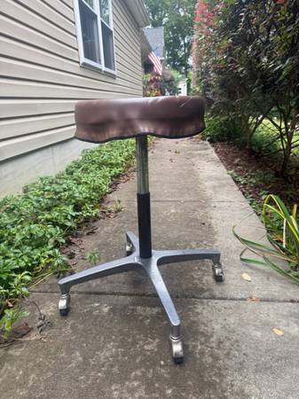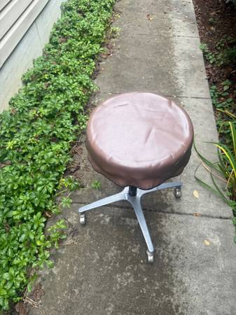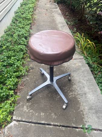 Cushy brown vinyl seat, chrome base and wheels; About 15in diameter seat x 27in height with 24in base; Cross posted, would deliver for a fee, no holds/FCFS; If you still see it, it's still for sale.