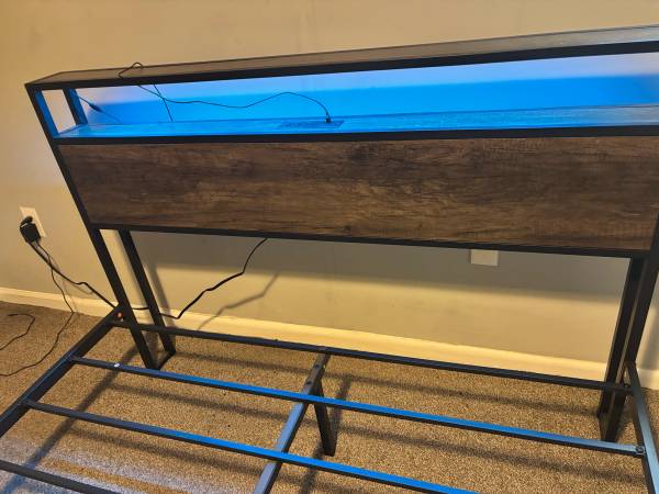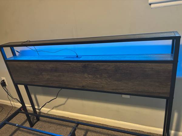 In very good condition, Led light works great ! metal frame comes can charge your phone .