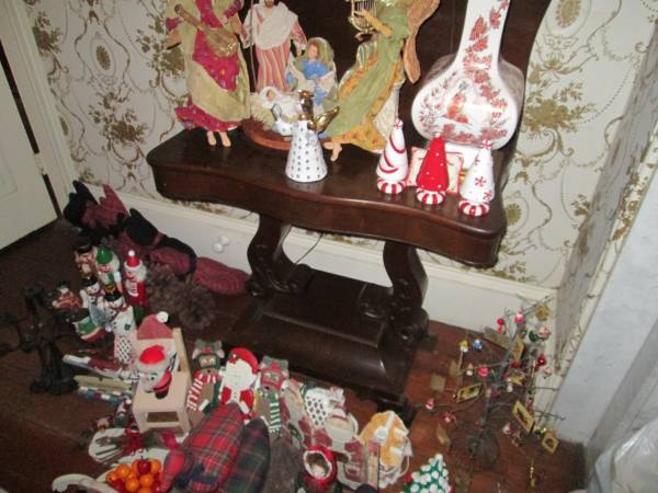 christmas stuff ,lamps, collectables , china table ware , old 33 and 45 records ,music boxes ,vintage clothing . tags , boat