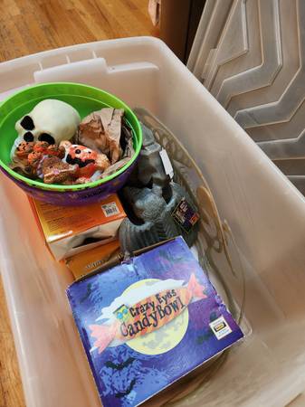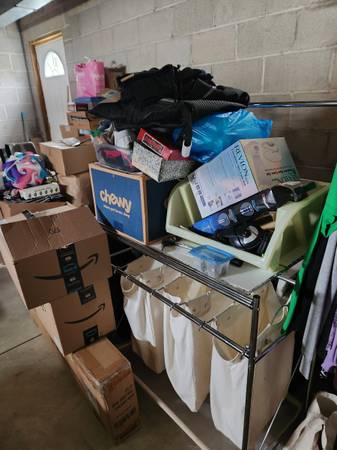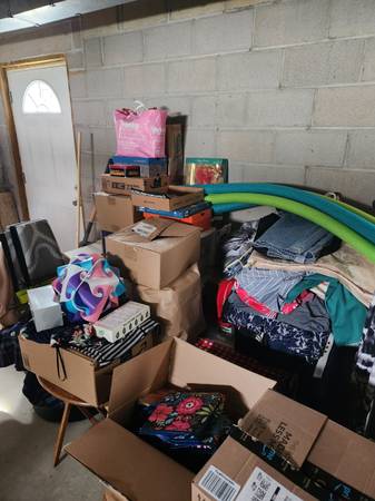 Way to much stuff! Halloween decor, household items, old tools, candles, large bathroom storage shelf, Laundry organizer, movies, toys, mens clothing, new levis and underarmour, gaming chair, kuerig, poly pocket, collector barbies, New set stainless steel pots, new pet toys, women and girls junior clothing new and used, size 7 shoes, New home interiors, photography processing stuff, and so much more. Large cerio cabinet in the house ask if want to see it.