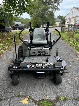 Blades are in great shape. The meter is showing 301 hours. (probably was swapped out at some point.) Ive never seen a high end commercial mower like this with less than like 500 hours so take the hour meter reading with a grain of salt. (probably has more). It is in excellent cosmetic shape and appears it was kept in a garage its entire life. The squeaking in the video is the front wheels. When I greased them the squeaking stopped. Its also hard to tell in the video just how fast this thing is. Dixie Chopper advertises they are the "Worlds Fastest Lawn Mower". Im not sure exactly how fast but its noticeably faster than my John Deere Z930M ZTrack. The ID sticker has worn out (see pic) and I called Dixie Chopper headquarters and when I gave them the serial number they said it was a "CL2760, 2010 model". Hydro fluid and both filters just changed. A 2025 comparable equivalent in Dixie Choppers current lineup would cost $15,000-$16,000. The Generac engine starts right up. It runs, drives, and mows perfectly fine. Nothing wrong with it, ready to mow. Any questions please call my cell, show contact info