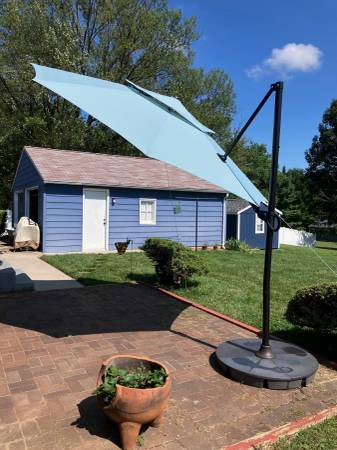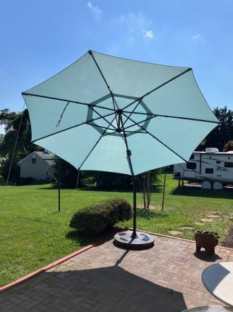 11-ft diameter Cantilever/Offset Umbrella with stand. Color: "Aquifer" (acqua).