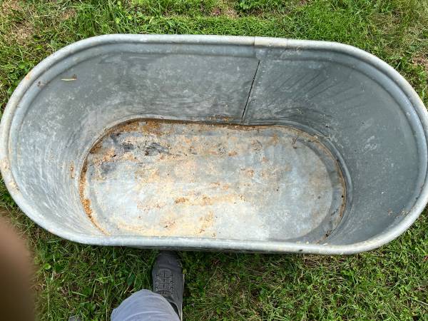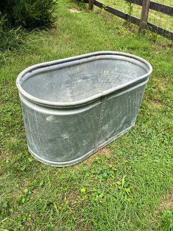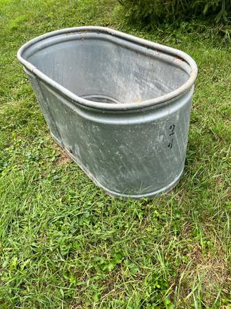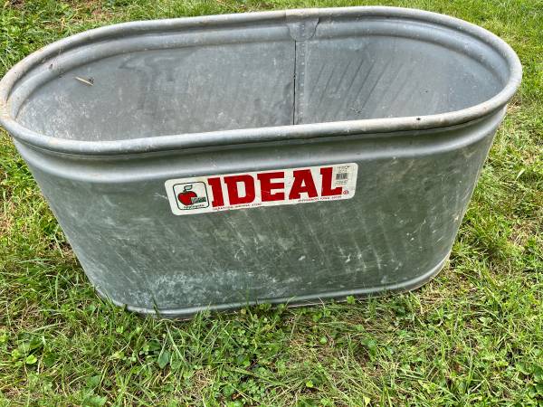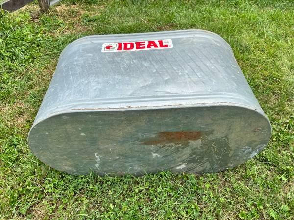 Ideal brand 95 gallon bin galvanized. Has hole at bottom for drain or heater