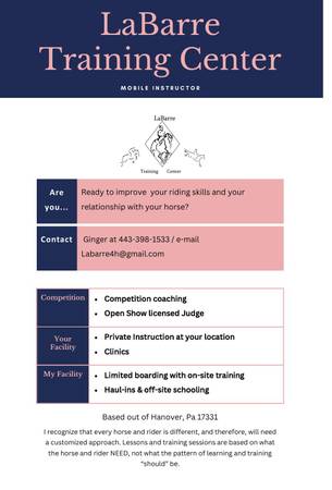 LaBarre Training Center is now both mobile- lessons given at your farm- and onsite in Hanover, Pa.