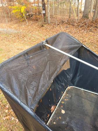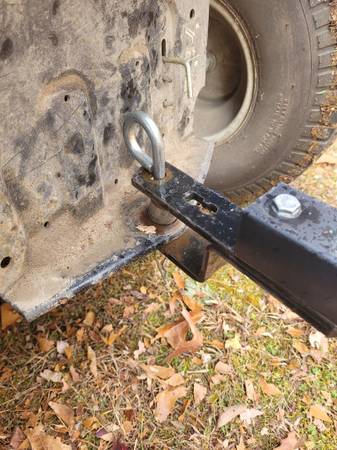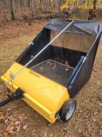 Cub Cadet Sweeper but will work with any lawn tractor. Pin Hitch. Works great. No rips or tears in hopper. I'm a homeowner, not a landscaper, so I only used it a couple of days a year.
