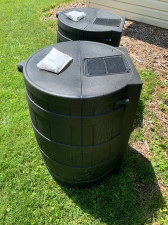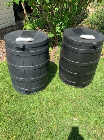 Two 50-gallon rain barrels with faucets. New, never used. They cost $275 new. Cash only.